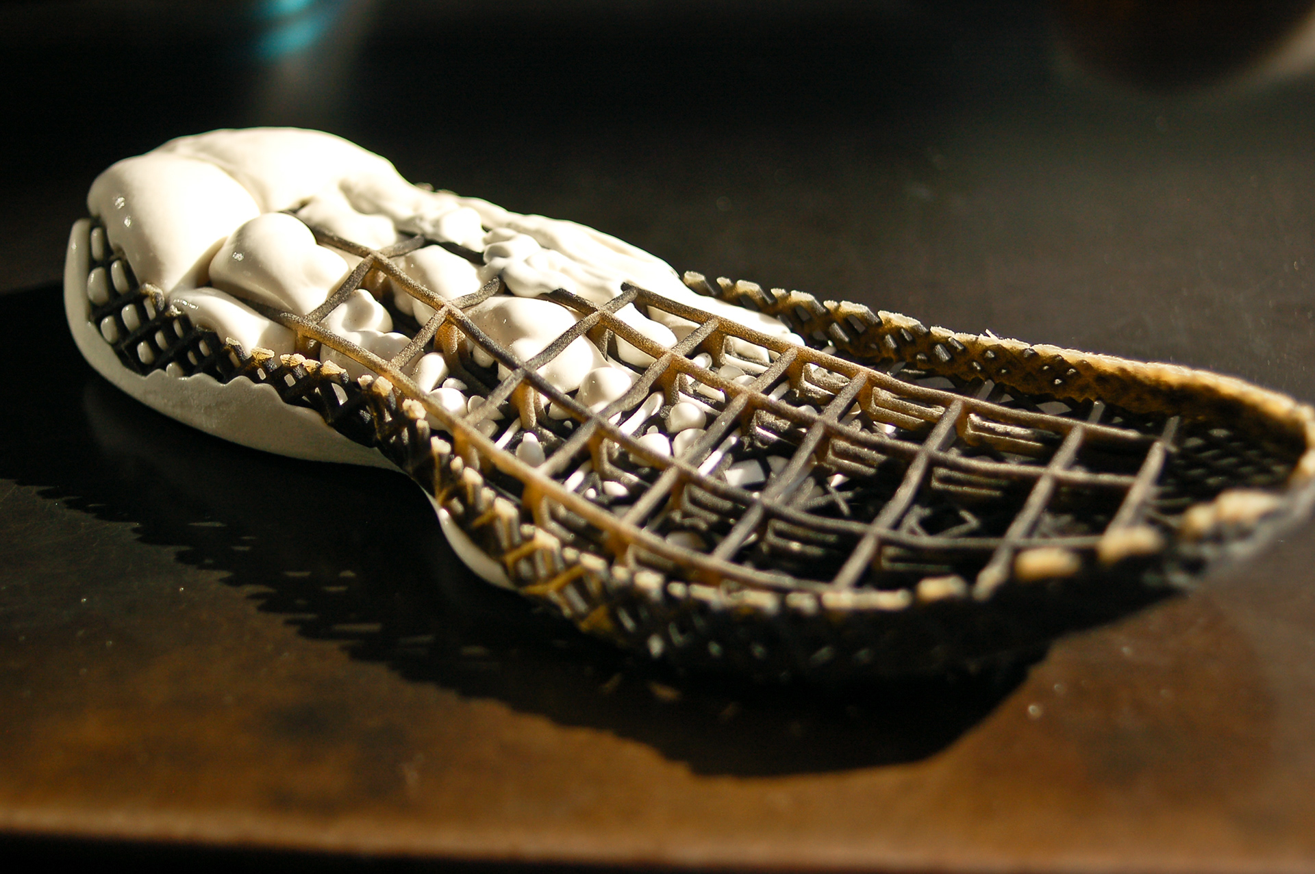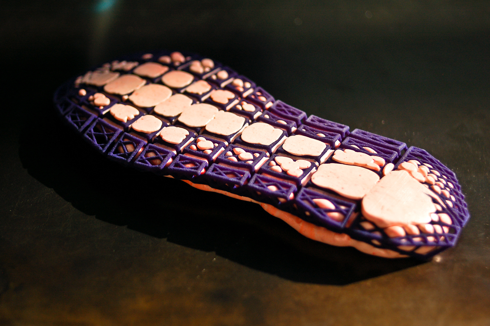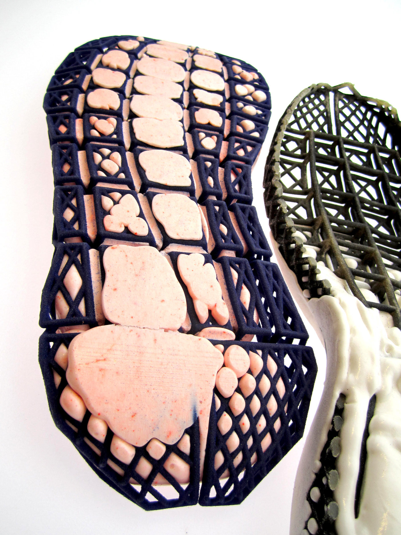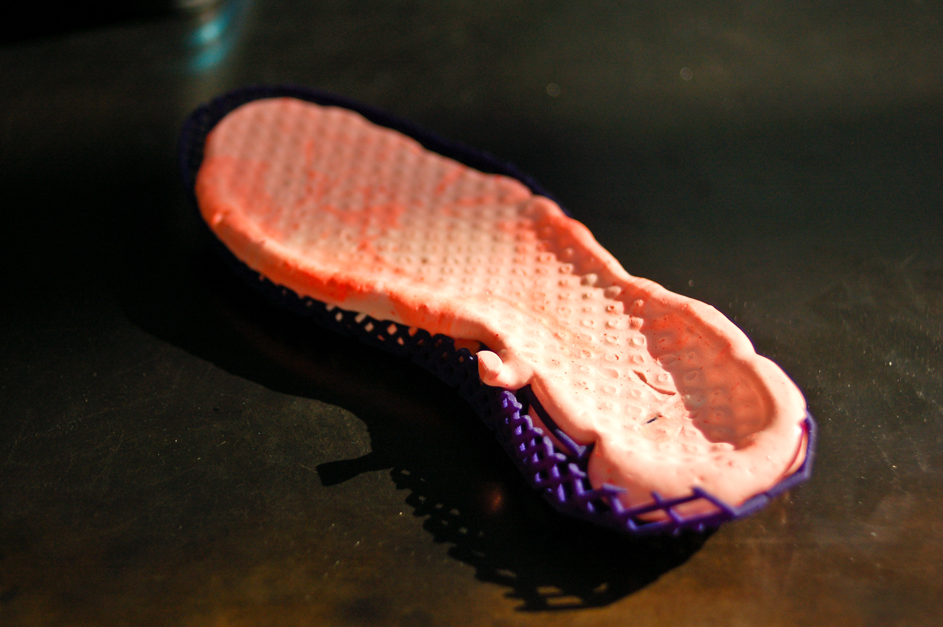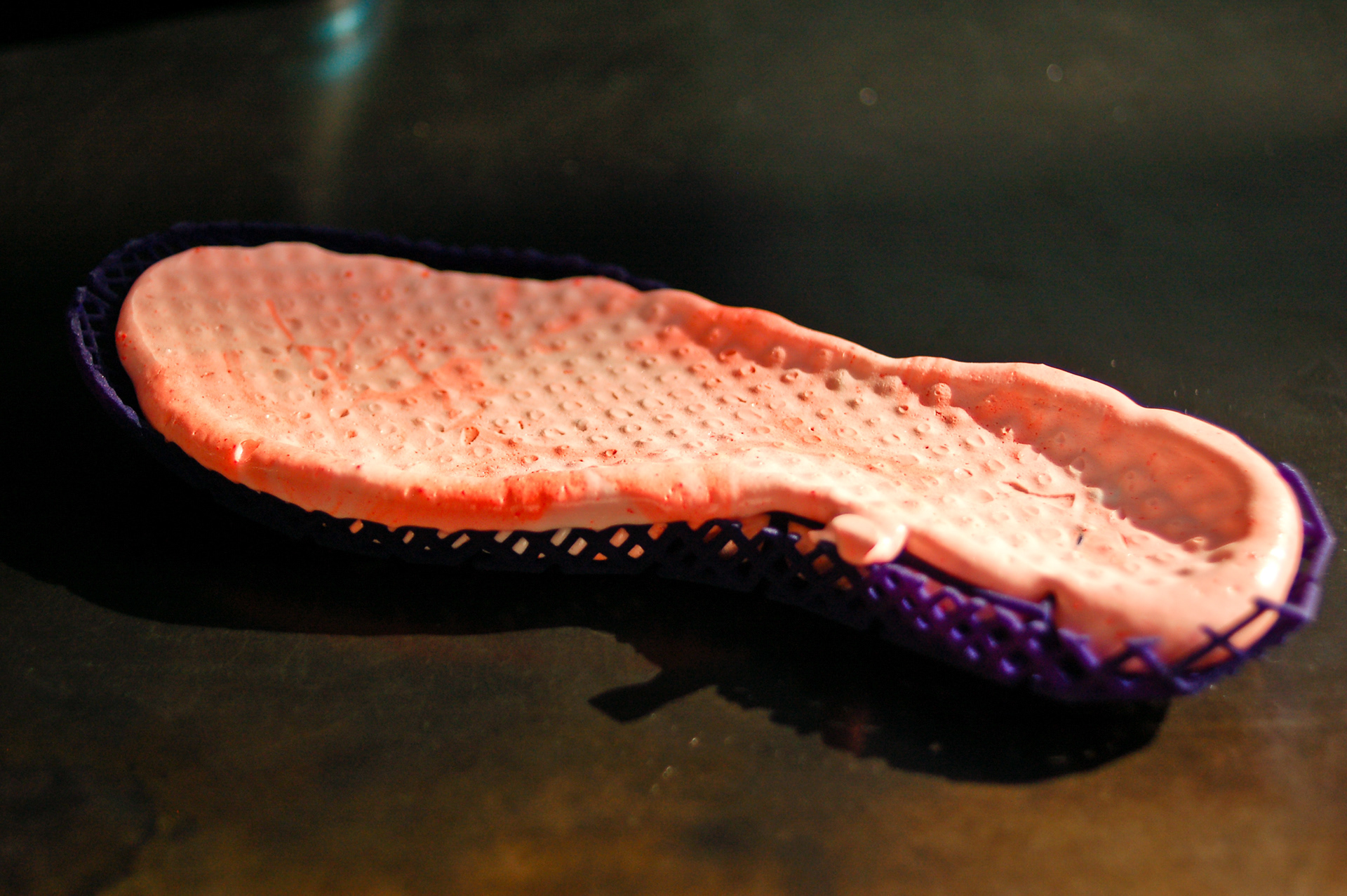 Midsole/Outsole experiments with a sintered substructure and poured PU